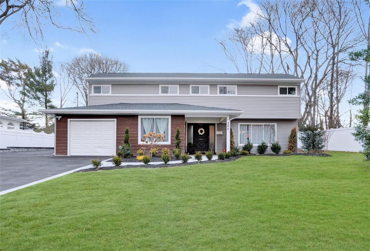 Welcome to 345 N Ocean Blvd, Patchogue, NY, a completely renovated modern home finished in 2022 with stylish upgrades throughout. The first floor features a guest bedroom and a bright office space, while the attached one-car garage provides direct access to a mudroom with laundry room with a utility sink and linen closets.The second floor boasts an open-concept living room with an electric fireplace, a dining area, and a modern kitchen. The third floor includes a primary suite with a full bath, plus two additional bedrooms and a full bathroom with a bathtub. The painted basement offers flexible space for storage or customization.Recent upgrades include a new paved driveway with Belgium blocks, new siding, roof, windows, fencing, solar panels, electric panel, heat pump with oil backup, and central air conditioning. Move-in ready?schedule your showing today!