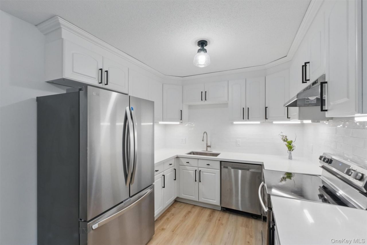 Highly desired Katonah model set in a serene location with absolute privacy. Enjoy the complete renovation...just move right in! Beautiful kitchen with Quartz counter tops, tile back splash, breakfast bar and stainless steel appliances. Formal dining room off the kitchen with wall sconces makes entertaining easy or simply perfect for a quiet meal. Generously sized living room is warmed by a fireplace and has a slider to new slate patio with belgian block trim, enjoy the solitude!. Primary bedroom with renovated bath will spoil you along with second bedroom and updated full hall bath. Great Layout!Lower level offers large room for storage along with laundry facilities. Oversized Garage. New Water Heater. Roofs scheduled to be replaced in the Spring. Lots of guest parking. Close to Golf Course and Restaurant. Amenities include: Pools, Tennis Courts, Fitness Center, Clubhouse, Bacci, Jitney to Metro North and More! Enjoy the country club lifestyle...you deserve it! 20% down in total is required. Mortgage can not exceed 80%.