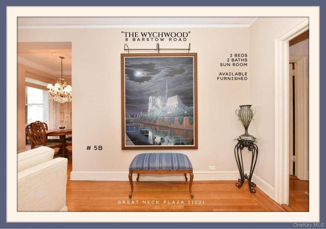 Great Neck Plaza: Magnificent 2 Bedroom - 2 Bath Co-op Apartment #5B is now available at the Famed Pre-War building, The Wychwood // Located in the heart of the Plaza, but has a Manhattan Park Avenue opulence // Feline Friendly // First Time on the Market in Decades, #5B is meticulously maintained + has an incredibly desirable Layout features Stately Entrance Foyer with custom Painted Walls, plus a Coat Closet // The 2 Generously Sized Bedrooms, each have their own en-suite Full Bathrooms with Showers + Double Closets // An elegant working Wood Fireplace with Stone Mantel is the centerpiece of the Spacious Living Room, which is complete with Recessed Lighting, High Ceilings + Large Windows overlooking the Buildings Courtyard // Off the Dining area youll enjoy a Sunroom with windows, perfect for a breakfast nook, office or exercise room // The Kitchen is Stunning with cabinets that span up to the Ceiling + Stone Granite Counters highlighted by under counter lighting plus a coffee bar + deep storage closet // Elevator Building Managed by Richland // Relax in the Resident Courtyard with BBQ area + Gracious Fountain // Helpful live-in Super + Large newly renovated modern Laundry in Building // The building also has a package room, for your Amazon deliveries // Extra Storage Space + Bike Room for Rent // Located by the LIRR with direct routes to PENN + Grand Central Madison // Great Neck South SD // Enjoy all the Culture Great Neck is Famous For: Musical Events, Movies, Yoga, Advanced Learning, Libraries, Parks, Boating ... just too much to list here // Only $1489 Monthly covers most // Outdoor Parking 24/7 now available in the LIRR Lots by the Building for $800 annually // #5B is also Available Fully Furnished with custom Designer pieces // Lovingly Maintained + Move-In Ready, youre invited to stop by for a most memorable viewing:)