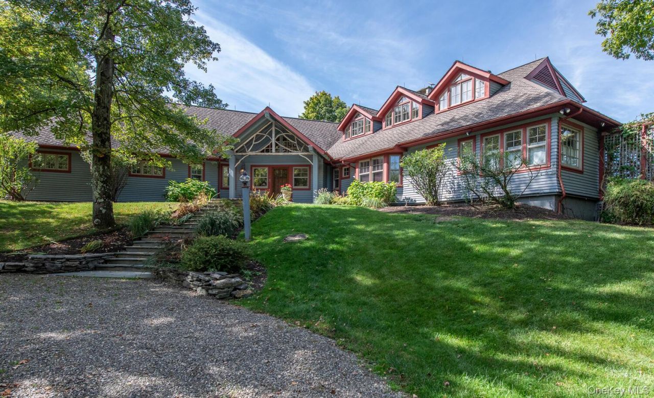 Nearly 30 secluded acres of rolling meadows and woodlands unfold into breathtaking panoramic views of the Catskill Mountains. This is a place to slow down and reconnect. Reminiscent of the Adirondack Great Lodges, this home is a masterful blend of rustic elegance and timeless craftsmanship. Soaring, strap-and-beam ceilings create a dramatic sense of space, while a custom-crafted staircase and a floor-to-ceiling wood-burning stone fireplace add to the home's warmth and grandeur. Step from the main living area out onto the brick patio to take in sweeping sunset views over the mountains. The expansive dining room easily accommodates large gatherings, and features a cozy window seat ideal for lounging while soaking in the views. The chef's kitchen is both stylish and functional, featuring a beamed tin ceiling, tile flooring, and stone countertops that lend a timeless elegance. Just off the kitchen, step into your private outdoor oasis. This expansive patio features a pergola draped in mature, blooming wisteria. At the heart of the space is a fully equipped built-in barbecue station perfect for hosting al fresco dinners or weekend cookouts. A half bath, laundry room, and walk-in pantry offer added convenience, leading directly to the attached garage. The first-floor primary ensuite has westerly mountain vistas, direct access to its own private deck, and a secluded outdoor shower. Three additional bedrooms and a full bath provide ample space for family and guests. The second floor offers additional privacy and flexibility, featuring a second primary ensuite complete with a private balcony. Two more bedrooms with balconies, a full bath, and a cozy reading nook create a warm and welcoming retreat. The heated gunite pool and pool house, complete with a full bath and kitchen, are perfectly positioned to capture all-day sunlight while maintaining complete privacy. Tucked away for privacy, the Vermont Post and Beam barn adds both character and versatility to the property. Outfitted with electric and a full second-story loft, it features eaved windows that flood the space with natural light. This exceptional property exudes quiet rustic elegance, with spacious living areas, rolling lawns, and dramatic Catskill Mountain views. Located in the northeast area of Dutchess County with easy access to Red Hook, Rhinebeck, Pine Plains, Millbrook, Tivoli, Germantown, Hudson and more. Convenient to trains, Fisher Center, Bard College, private airports, excellent restaurants, farmers markets and more.